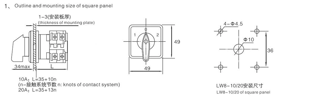 - Fremragende sikkerhedsydeevne: 10A tre-positions roterende knastknap, der anvender strengt udvalgte materialer af høj kvalitet og en samlet kompakt struktur, den har fremragende isoleringsydelse, hvilket sikrer elektrisk sikkerhed fra kilden; koblingsoperationen er jævn og fleksibel med høj sikkerhed og pålidelighed.