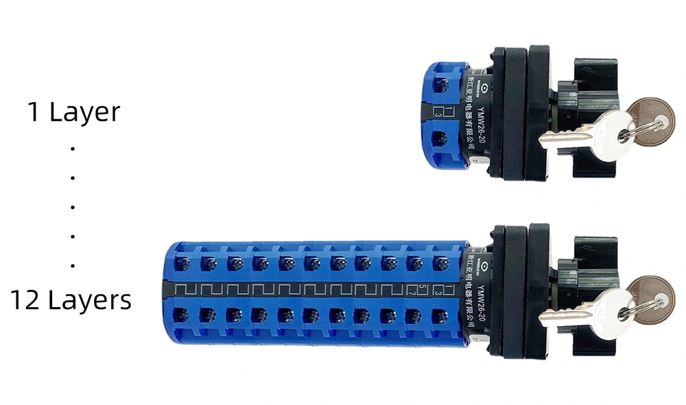 Som en professionel producent af elektriske afbrydere med over 30 års erfaring har YAMING lanceret 20A Key Rotate Changeover Switch (intern model: YMW26-20YS), et højtydende produkt raffineret gennem mange års teknologisk innovation og udsøgt fremstilling. Denne switch er designet til problemfri og pålidelig kredsløbskontrol og konvertering, anvendelig til AC-kredsløb med en maksimal spænding på 690V, 50Hz og DC-kredsløb under 240V, der understøtter en nominel strøm på op til 20A.