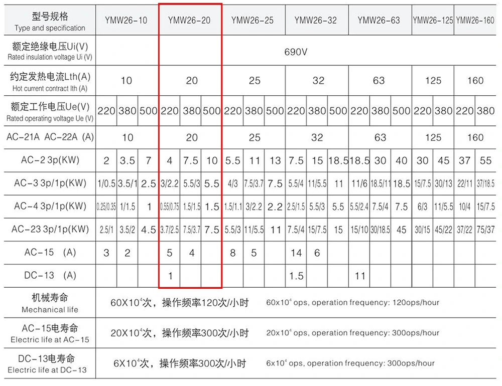 YAMING 20A Hængelås Push Control Rotary Cam Switch er konstrueret til at tilpasse sig forskellige elektriske arbejdsmiljøer med følgende vigtige tekniske parametre: Den er anvendelig til AC 50Hz kredsløb med en maksimal driftsspænding på 690V og DC 240V kredsløb, der understøtter en mærkestrøm på op til 20A.