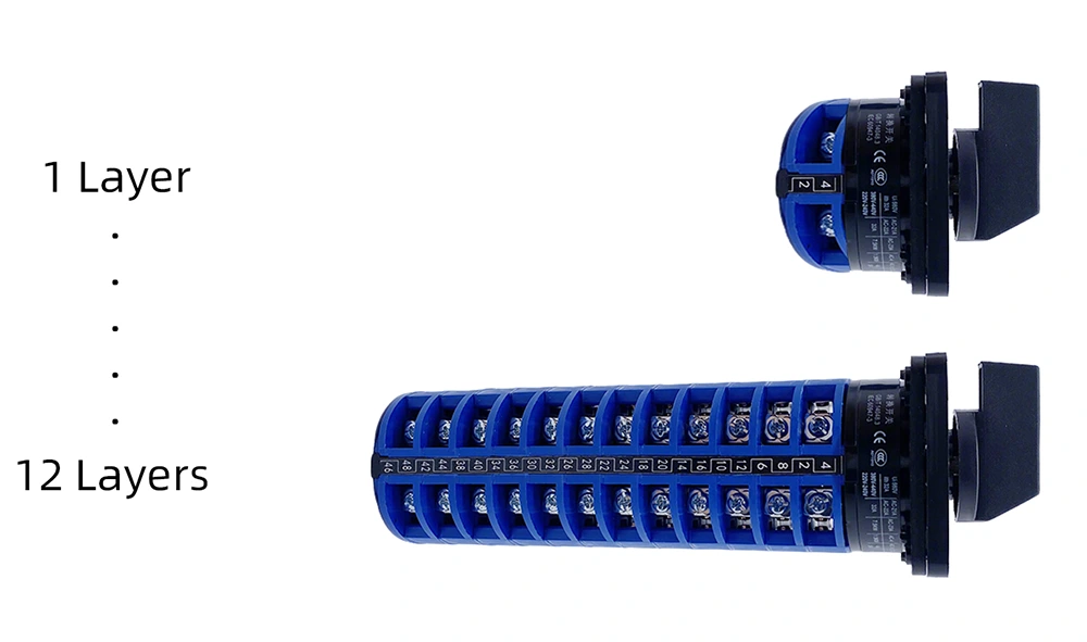 Og denne 32A roterende knastkontakt kan tilpasses (fra 1 til 12 lag):