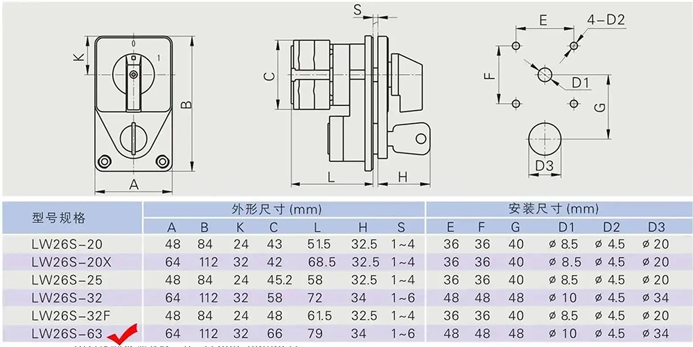 YAMING, en professionel producent af elektriske afbrydere med over 30 års dyb ekspertise, lancerer LW26 63A Key Control Changeover Cam Switch (intern model: YMW26-63YS4) i Kina. Den er anvendelig til AC 50HZ-kredsløb med nominel spænding ≤690V og DC-kredsløb med spænding ≤240V, der understøtter en mærkestrøm på 63A. Med kompakt design, omfattende funktioner og fremragende sikkerhedsydeevne bruges den i vid udstrækning i hovedkredsløbskonvertering, direkte motorstyring, kommandokontrol og målescenarier og kan tilpasse sig forskellige barske arbejdsmiljøer.