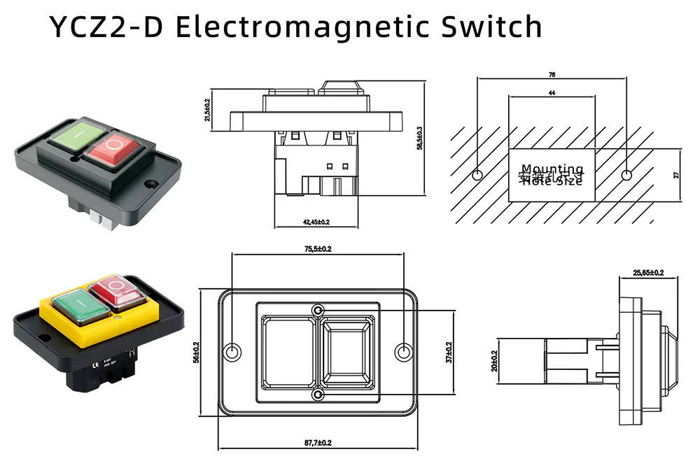 Med over 30 års dyb brancheerfaring er Zhejiang Yaming Electric en velrenommeret premium producent af elektriske afbrydere fra Kina, bredt anerkendt globalt for enestående pålidelighed. Vi specialiserer os i at levere skræddersyede professionelle løsninger og konsekvent stabile, højkvalitets elektriske produkter til verdensomspændende kunder. Vores 8A store gule trykknap-elektromagnetiske kontakt (intern model: YCZ2-D) anvender banebrydende produktionsteknologi og gennemgår en streng kvalitetsinspektion i hele processen. Den har en forlænget levetid, høj nominel arbejdsstrøm og førsteklasses tætningsydelse. Udstyret med reserverede eksterne plug-in-terminaler kan denne kontakt perfekt forbindes med perifere sikkerhedskomponenter, herunder overbelastningsbeskyttelsesafbrydere, endestopkontakter, termostater og Hall-sensorer for at opbygge et komplet sikkerhedsbeskyttelseskredsløb. Når en mekanisk fejl sker, vil den øjeblikkeligt afbryde hovedstrømforsyningskredsløbet, hvilket effektivt eliminerer potentielle sikkerhedsuheld.