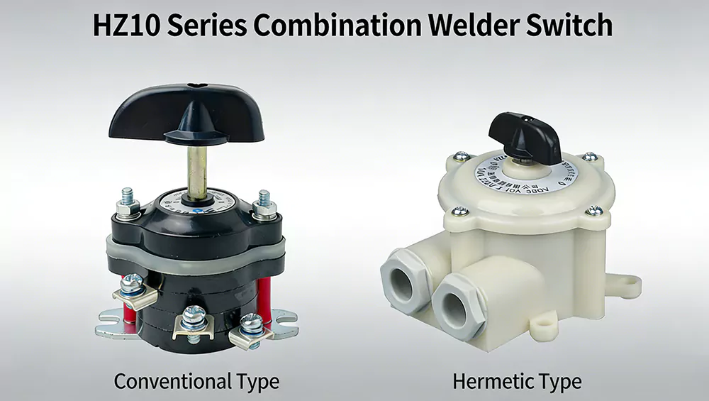 HZ10-M Airtight Type Combination Cam Switch 10A regulerer svejsestrømmen under 100A. De fungerer som hovedkredsløbsafbrydere og hjælpekredsløbsskiftere til elektrisk udstyr, velegnet til AC 50/60 Hz op til 380V.